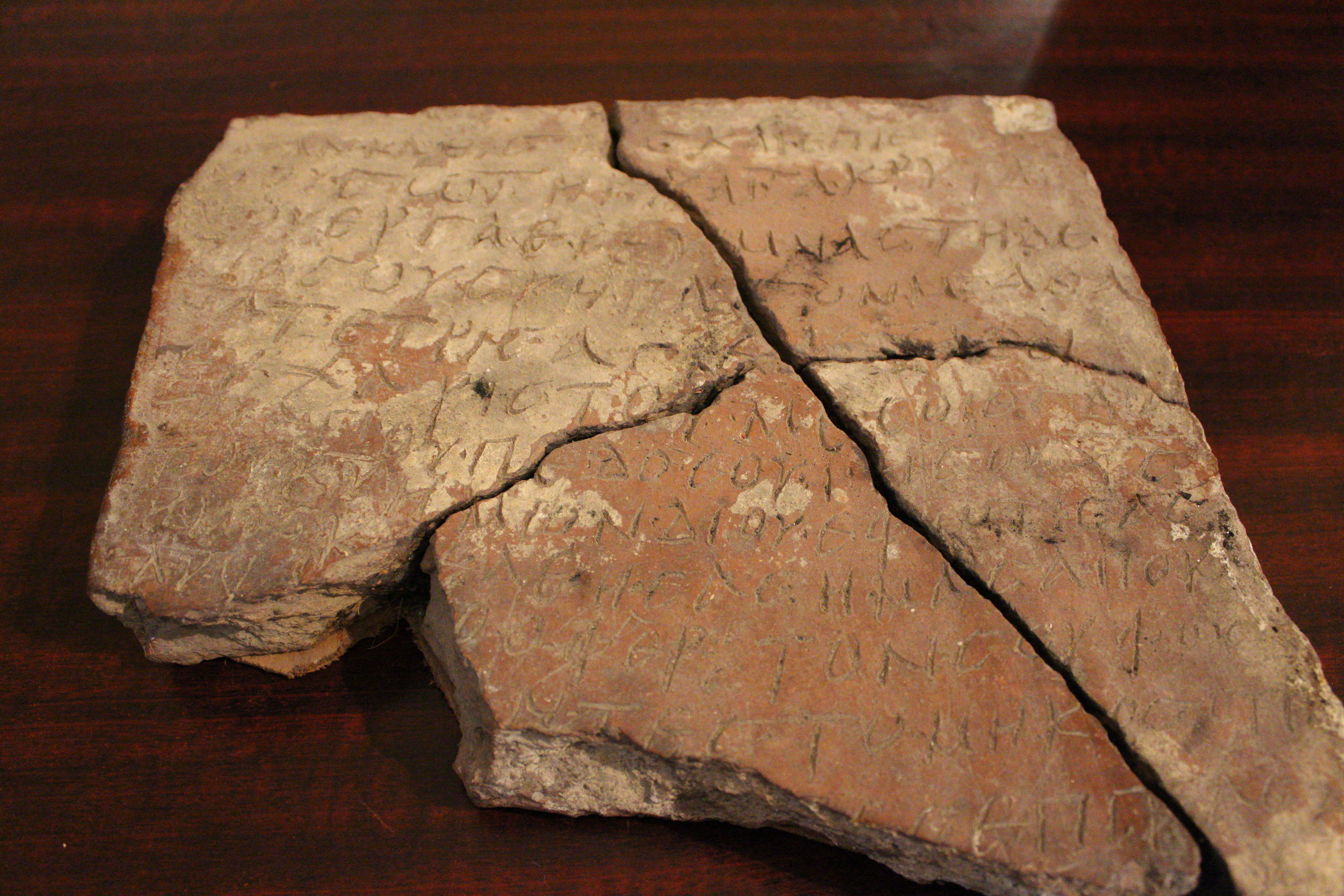 Tinatin Kaukhchishvili: The word “θρόννου” has two orthographic errors, “θρόνου” is correct. The word κρυτά has the facilitation of joint πτ. The word "ἐρευμνᾶς" has orthographic error, "ἐρευνᾶς" is correct. According to the language norms and paleographic characteristics the inscription can be dated to the Middle Bysantinium period (VI-VIII centuries). Mentioning Nosiri and St Stephen churches by the Byzantinean historians (Procipius, Justinian, Agathia) also proves the same date.