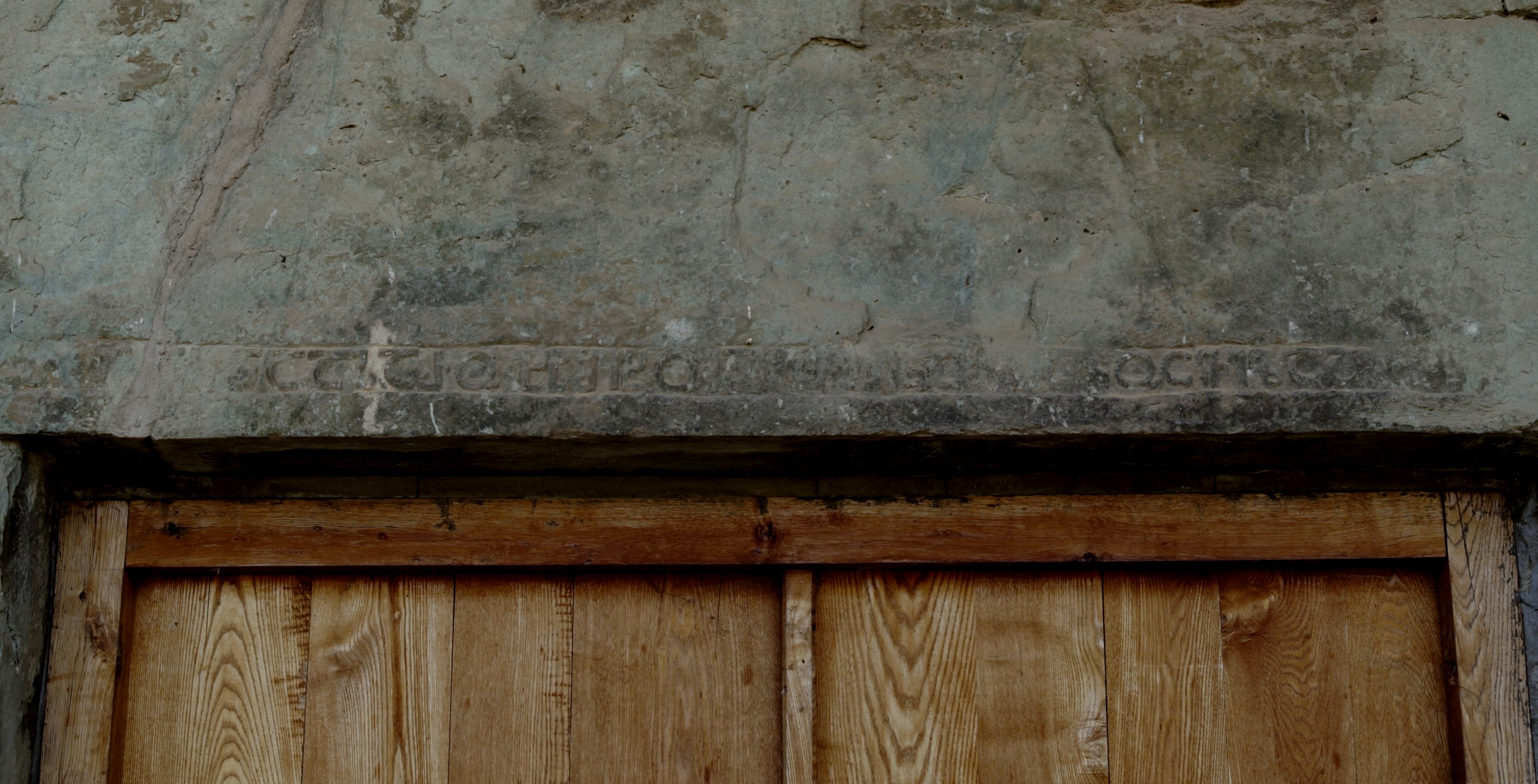 <!-- „[შეწევ]ნითა ქ(რისტ)ჱსითა მ[ე] ფარნ[ავაზ] და აზარუხტ შეხუა[ბ]თ ესე კარი სალოცველად [ჩ(უე)ნ(და) დ]ა [შჳლთა ჩ(უე)ნთა]“ -->