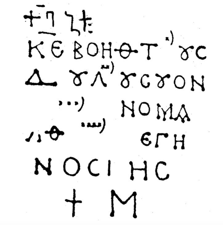Κ[ύρι]ε βοήθ[ει] τοὺς | δούλου[ς] σου | ὧν [τὰ ὀ]νόμα[τα] | ...αθ [κύρι]ε γι | νώσκεις | †Μ -->