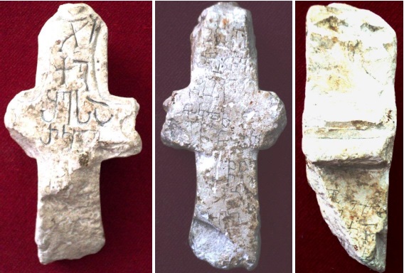 I. ჯუარი, ქრისტე, შეიწყალე, სა (ხუნძ.), რკელ (ხუნძ.). II. წმიდაო გიორგი, წმიდაო თეოდორე, წმიდაო ყეშე, წმიდაო ნიკოლოზ, ღმერთმან გიორგი, წმიდაო ებ(?). III. ქრისტე, წმიდაო, დიმიტრი წმიდაო. IV. ჯუარი, ქრისტე.